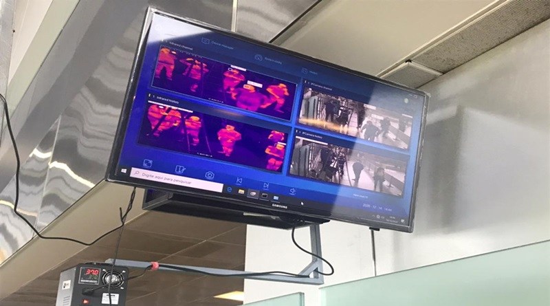 Além do totem, a câmera Dyno DM60 também foi instalada no terminal 3. É integrada a um software com algoritmo de reconhecimento facial de alta precisão e desenvolvida especificamente para ambientes com alta circulação de pessoas, como metrôs, aeroportos, terminais e hospitais. O sistema tem capacidade para ler cerca de 3.600 pessoas por hora e em 24 horas realiza a medição térmica de 86.400 pessoas. Realiza calibragem inteligente e contínua para reduzir a taxa de falsos alarmes, além de triagem rápida sem contato, evitando a infecção cruzada.