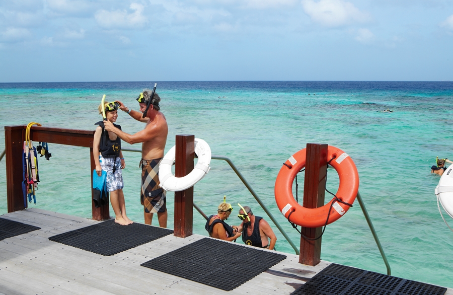 As águas cristalinas da Ilha Feliz são perfeitas para praticar snorkel. Os arrecifes, localizados bem perto da praia, possuem uma vida marinha abundante, colorida, exótica e de fácil acesso. Os melhores lugares são as praias de Boca Catalina e Arashi, ao norte da zona hoteleira, e Mangel Hato e Baby Beach, ao sul.