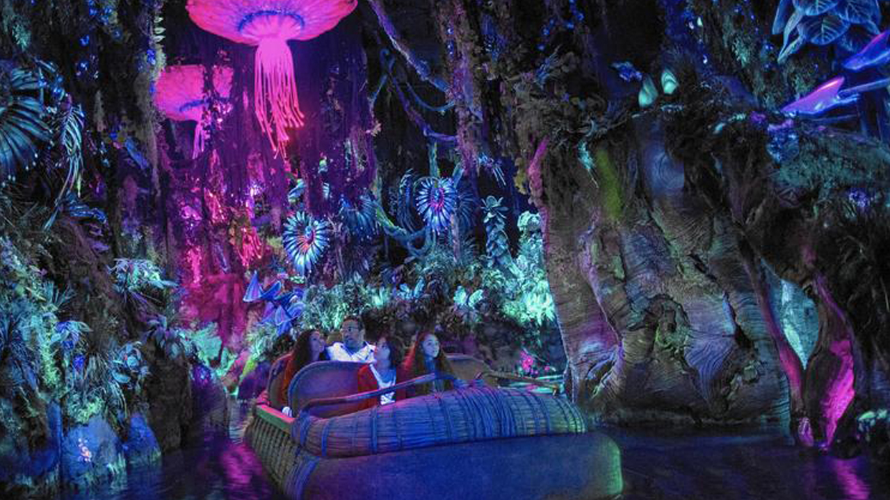 Mas o que impacta mesmo no novo espaço do parque é seu cenário, com a recriação de ambientes famosos do filme, como a floresta bioluminescente e as montanhas flutuantes, que levam o imaginário do público de volta para as telas do cinema. São duas atrações propriamente ditas, o Na’vi River Journey, passeio por um rio entre as floretas biolminescentes; e o Flight of Passage, um simulador de um voo num banshee, um pássaro gigante de Pandora, onde você pode imergir no mundo de Avatar.