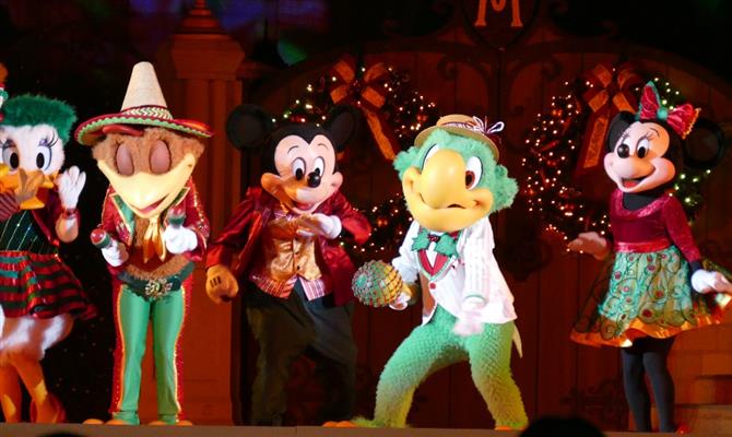 As noites da Disney ganharam uma nova festa de Natal com a estreia de Mickey’s Most Merriest Celebration. O show de personagens da turma do Mickey iniciou as celebrações de fim de ano da Disney no último dia 7, no Magic Kingdom. Na atração, que se passa em frente ao Castelo da Cinderela, o camundongo convida seus amigos para celebrar o Natal. Em uma das aparições, o Brasil foi homenageado com a participação de Zé Carioca falando palavras em português.