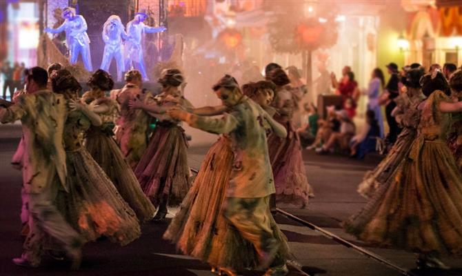 Outro destaque é a Haunted Mansion, que vai trazer dançarinos de salão do cemitério, e até mesmo os fantasmas que viajam a partir da atração popular para a vida como eles desfilam pelas Fantasyland e para baixo Main Street EUA.