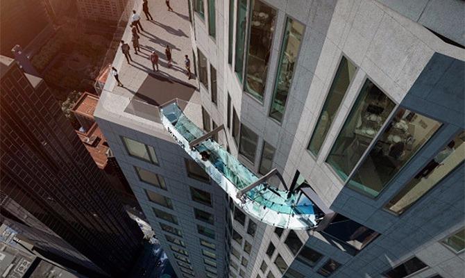 O skylide é um escorregador feito totalmente de vidro, ficará acoplado ao prédio e irá ligar o 70º e 69º andares. A inauguração acontece no dia 25 de junho e além do escorregador, no prédio ainda haverá uma área de observação com uma visão 360 graus e terá ainda restaurantes e bares com uma exibição interativa, contando a história dos bairros e pontos de Los Angeles.