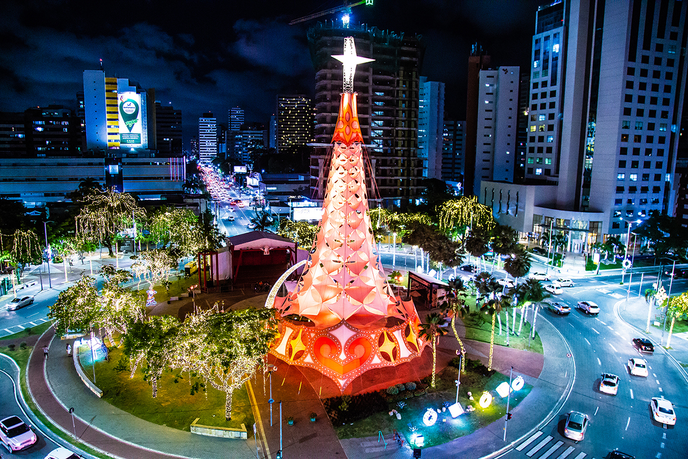 Nesta época do ano, além das belezas naturais de praias e clima de Verão, quem passeia pela cidade e por pontos urbanos simbólicos como as Praças do Ferreira e Portugal, nos bairros Centro e Aldeota, encontra dois monumentos temporários que chamam atenção pela beleza e delicadeza: as árvores gigantes de Natal temáticas.