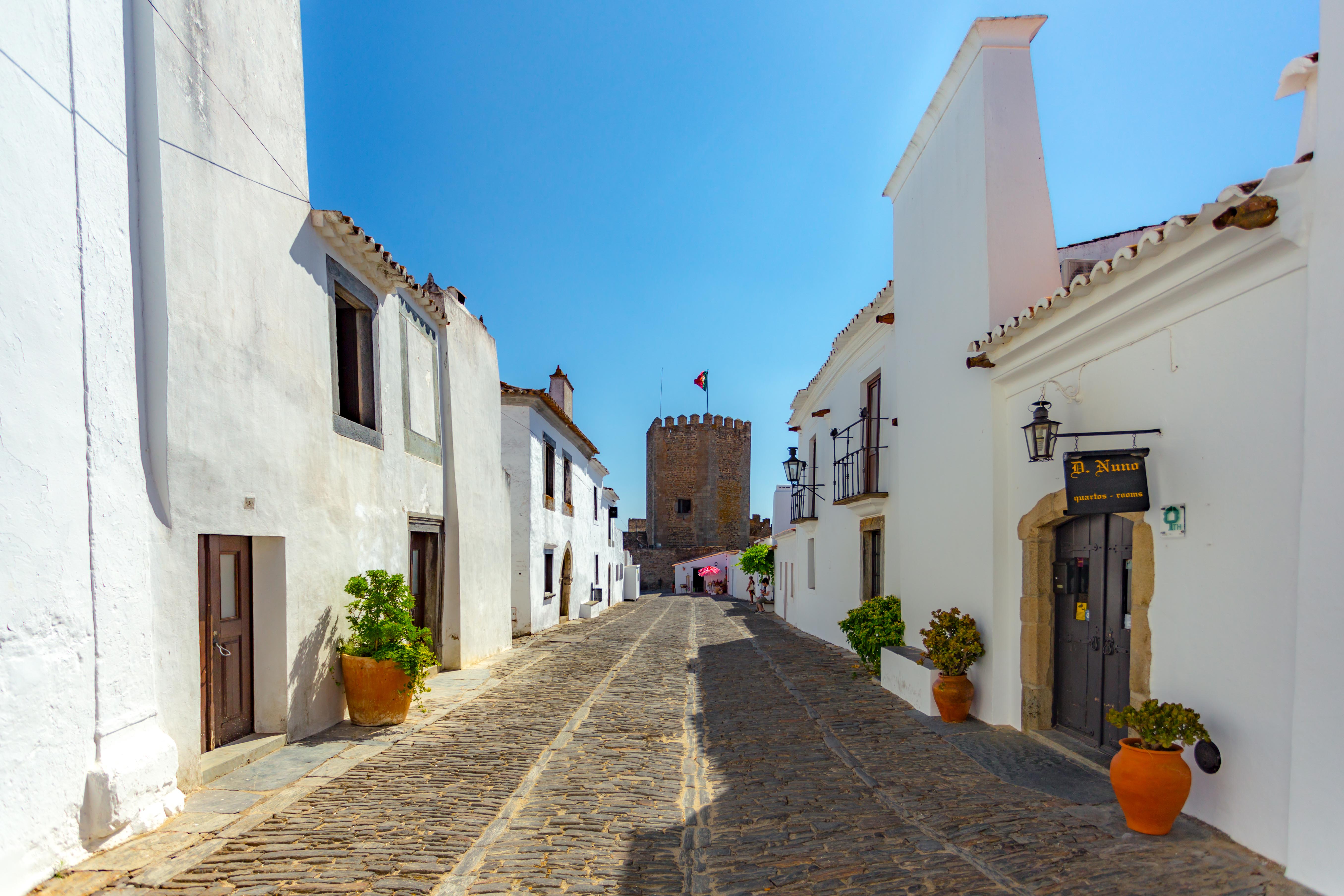 Próxima da fronteira com a Espanha, Monsaraz é simplesmente apaixonante. Suas ruas de pedra e casinhas charmosas parecem combinar perfeitamente com os arredores. O castelo, que fica no topo da colina, garante um visual impressionante do lago Alqueva, que fica ainda mais bonito ao pôr do sol.