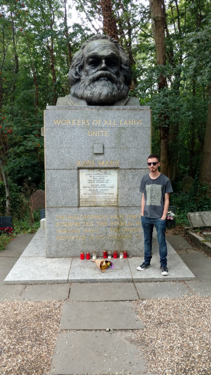 Fabrizio em frente ao monumento “Workers of all lands unite” /Foto: Fabrizio Neitzke