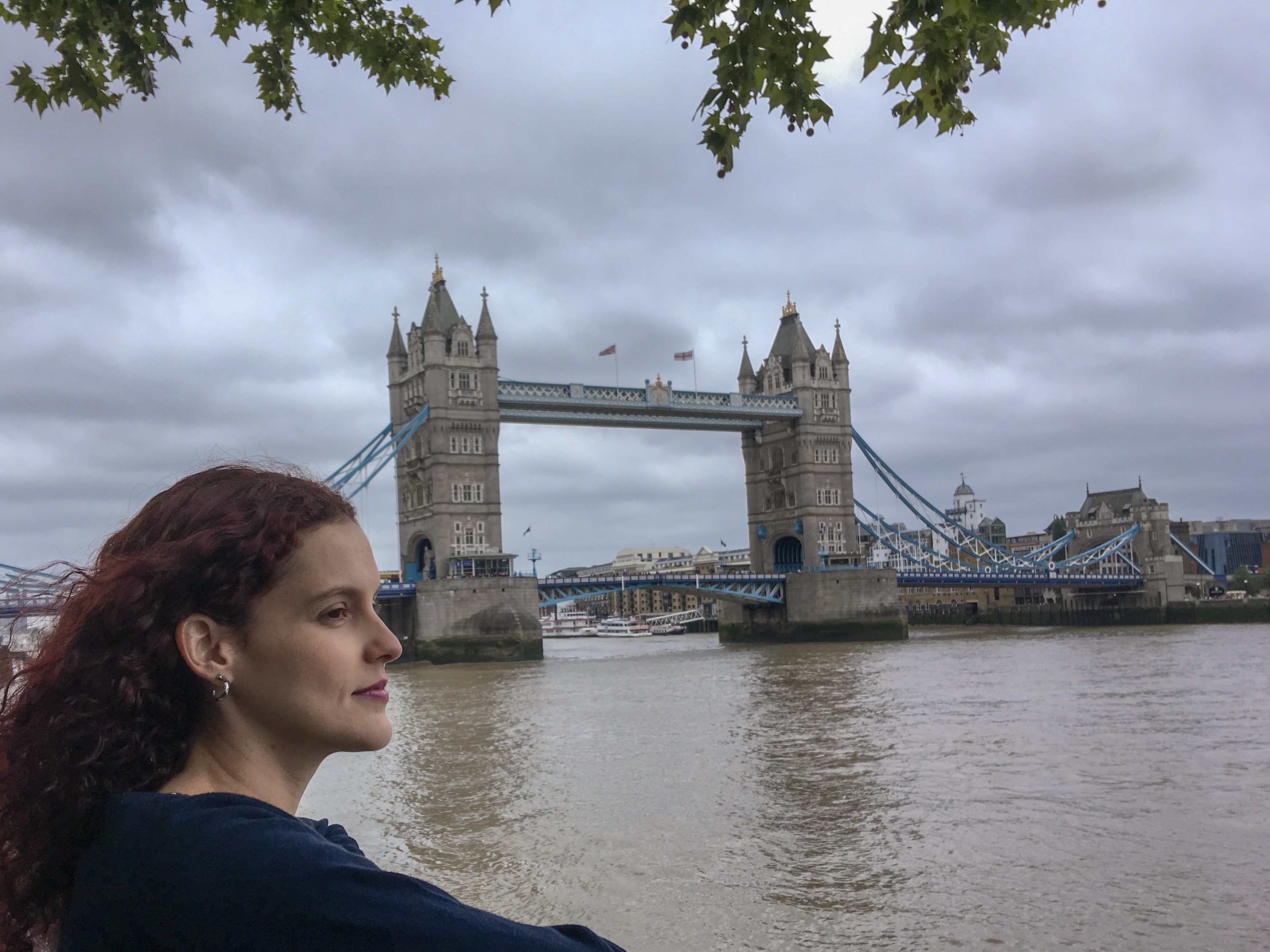 Laís em Londres, ao fundo a imagem da Tower Bridge de fundo / Foto: Laís Pereira