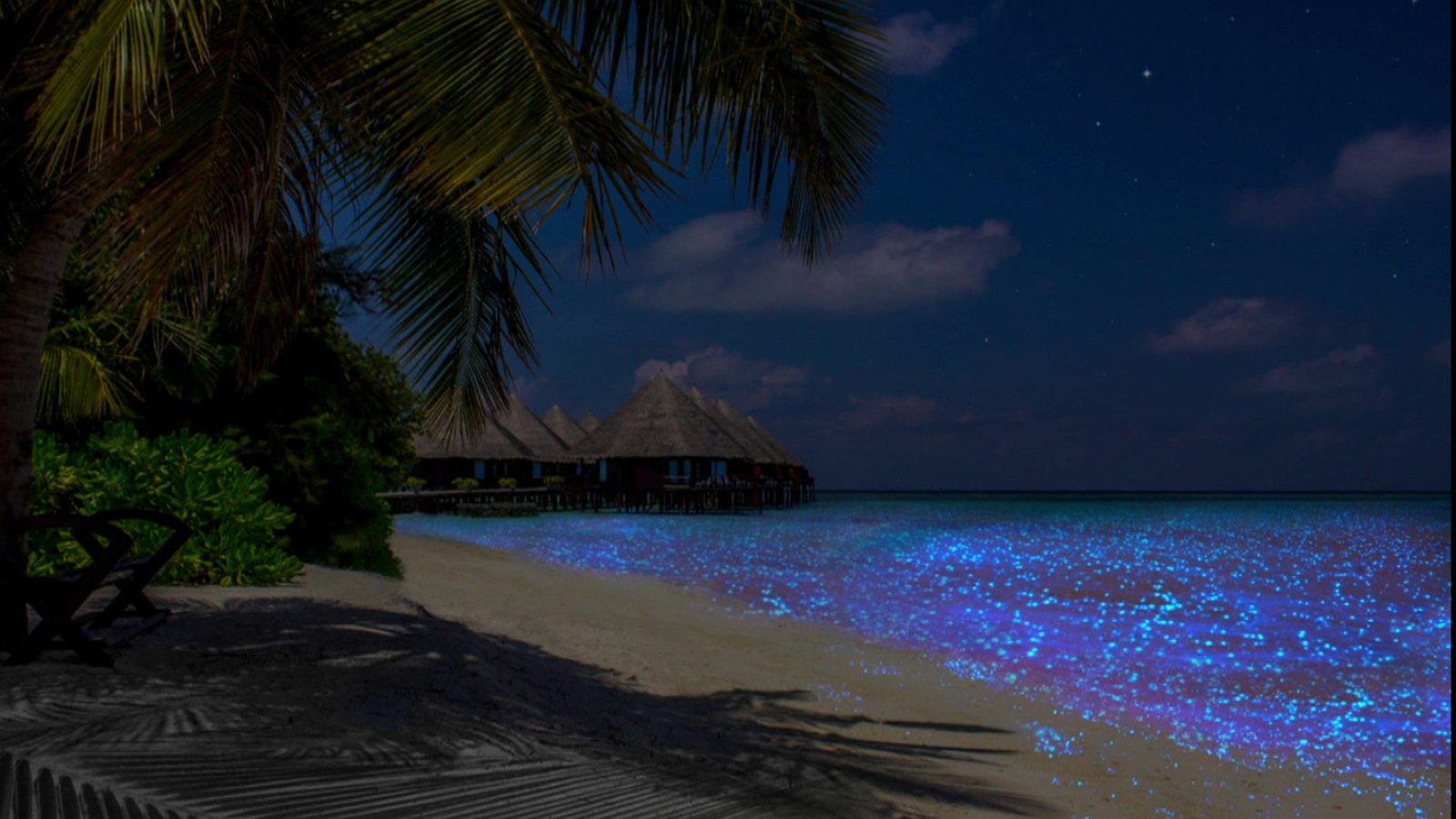 Nas Maldivas, as praias paradisíacas ganham novos contornos à noite, quando as águas que banham o arquipélago brilham no escuro, formando um verdadeiro mar de estrelas.