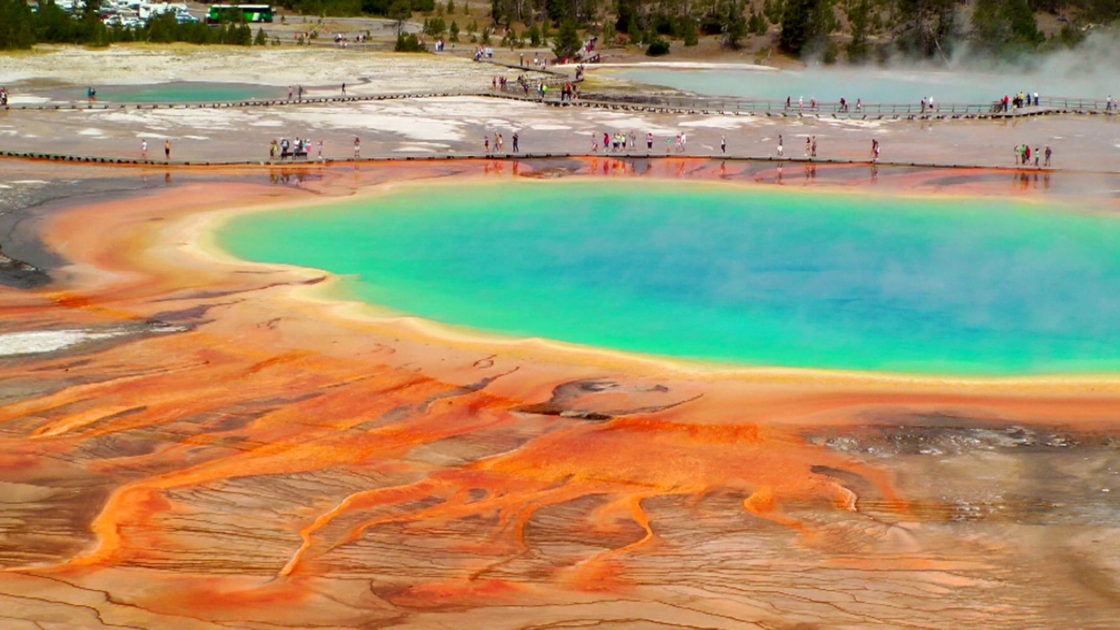 Um exemplo é a fonte de água termal com as cores do arco-íris do Parque Nacional Yellowstone, no Estado de Wyoming, nos EUA.