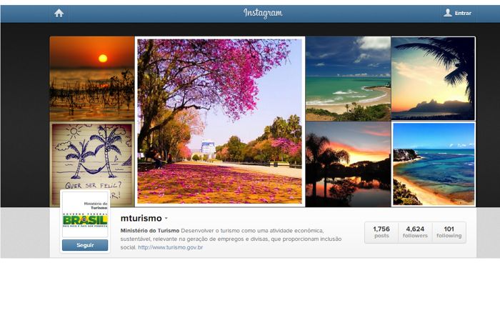 O Ministério do Turismo estreou seu perfil no Instagram há pouco mais de três anos, com uma foto do litoral de Fortaleza. A ideia era promover os produtos e serviços turísticos nas mídias digitais. A adesão à rede social, no entanto, superou as expectativas. Por meio das hashtags #MTur e #PartiuBrasil, usuários passaram a enviar fotos de viagens de modo que, hoje, a rede social concentra 118 mil imagens. Os dados são do site Iconosquare, que mede estatísticas de perfis e publicações no Instagram.