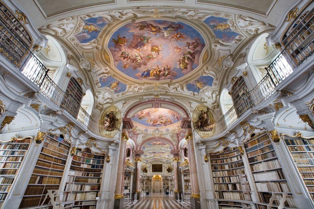 A Biblioteca de Admont está localizada aos pés dos Alpes Austríacos e conta com mais de 200 mil volumes.