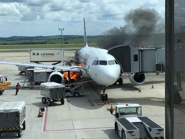 Imediatamente, a brigada de incêndio do aeroporto foi acionada para apagar as chamas.
