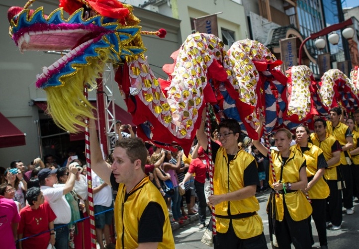 Uma das atrações mais aguardadas da festa é o desfile de trajes típicos e a famosa dança do dragão, na qual 20 pessoas se escondem em uma fantasia e executam uma coreografia. Além das barraquinhas de comidas típicas, há apresentações de tradições da cultura da China, como caligrafia, música e medicina alternativa.