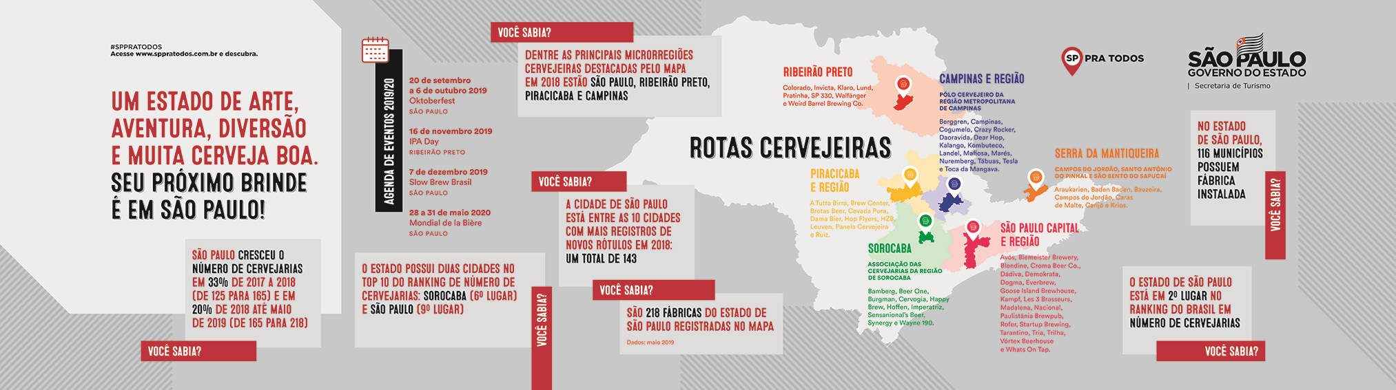 Para este lançamento, a Secretaria de Turismo do Estado de São Paulo preparou–se no armazém 2 do festival para a divulgação dos destinos que contemplam esta rota, além de outros que se destacam pela atividade turística. São Paulo já possui cinco Rotas Cervejeiras: Capital e Região; Campinas e Região; Sorocaba; Serra da Mantiqueira e Ribeirão Preto. No total, há 218 fábricas de cervejas no Estado, que já está em 2º lugar no Ranking do Brasil em número de cervejarias.