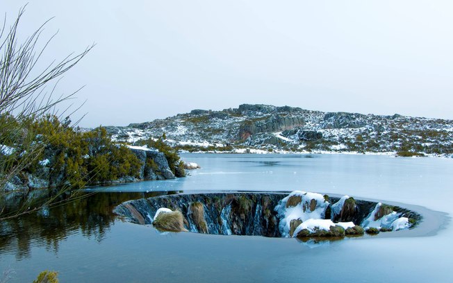 Duas semanas depois do registro, a dupla fez uma caminhada de 5km por cerca de uma hora a pé para documentar o buraco coberto de gelo. A Lagoa dos Conchos estava mesmo coberta por uma fina película de gelo e a vegetação em redor coberta de gelo e neve.
