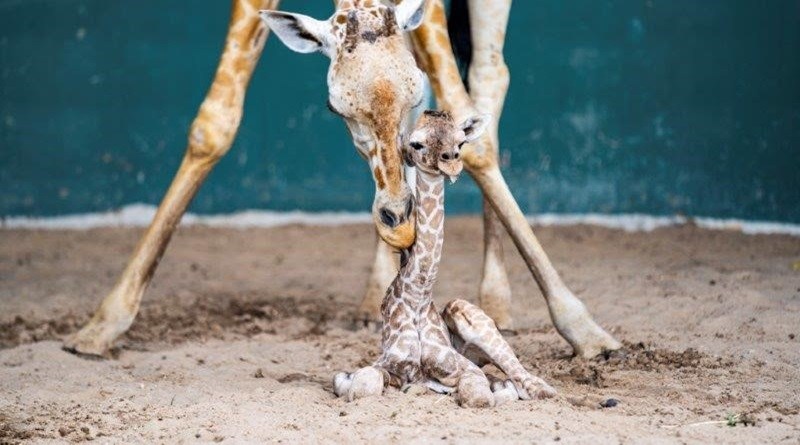 Nascimento do filhote coincidiu com a data comemorativa da espécie, que celebra o animal mais alto do mundo e conscientiza sobre a situação das populações ameaçadas na natureza