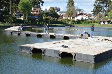 Faltam poucos dias para iniciar a 31ª edição do maior evento natalino do Brasil. O Natal Luz de Gramado começa no próximo dia 28 de outubro e vai até 15 de janeiro de 2017. Uma das grandes atrações já está recebendo toda a estrutura de palco, piers e arquibancadas. O espetáculo “Eu Sou Maria” que acontece no Lago Joaquina Rita Bier às quartas feiras e sábados vai receber diversas alterações. Uma delas são os palcos flutuantes que terão um novo formato que chegará mais próximo da plateia, “será uma história circular, os atores irão de um lado para outro, será uma maneira de contar muito melhor a história”, diz Edson Erdmann, diretor artístico do evento.