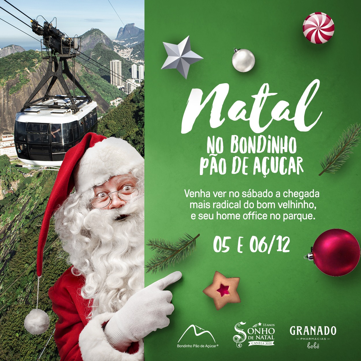 Em parceria com a Prefeitura da Cidade de Canela, famosa pelo seu “Sonho de Natal”, neste sábado (05/12) às 10h30, o Papai Noel chegará ao Bondinho Pão de Açúcar de forma inédita e radical. Surpresa!
