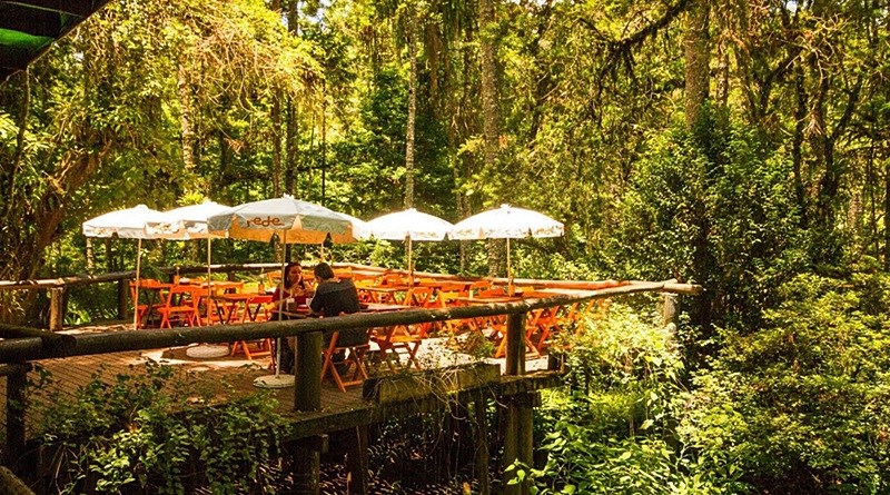 Nos dias ensolarados e de calor, os lugares mais disputados são as mesas ao ar livre, dispostas sob a sombra de frondosas árvores e rodeadas por riachos cristalinos com abundantes araucárias. Lugar ideal para as famílias, principalmente com crianças, o local é o ponto ideal do churrasco preparado no fogo de chão a lenha com destaque para os cortes inconfundíveis de picanha, beef ancho argentino, fraldinha, pernil de cordeiro, frango e linguiça. Aliás, as carnes dali são todas importadas do Uruguai e da Argentina.