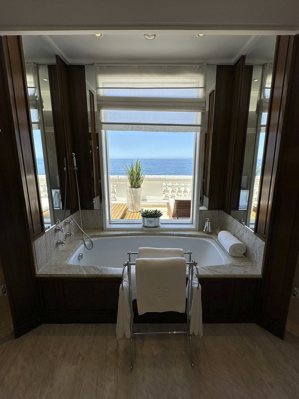 Durante minha hospedagem no Belmond Copacabana Palace, tive o privilégio de conhecer o lendário sexto andar, onde ficam as famosas suítes presidenciais. Essas acomodações, frequentadas por algumas das personalidades mais importantes do cenário internacional, são um verdadeiro marco da sofisticação e exclusividade. Cada suíte reflete o prestígio do hotel, com design elegante, mobília de luxo e uma vista deslumbrante para o mar de Copacabana, um cenário que já recebeu figuras como reis, presidentes, artistas e celebridades globais.