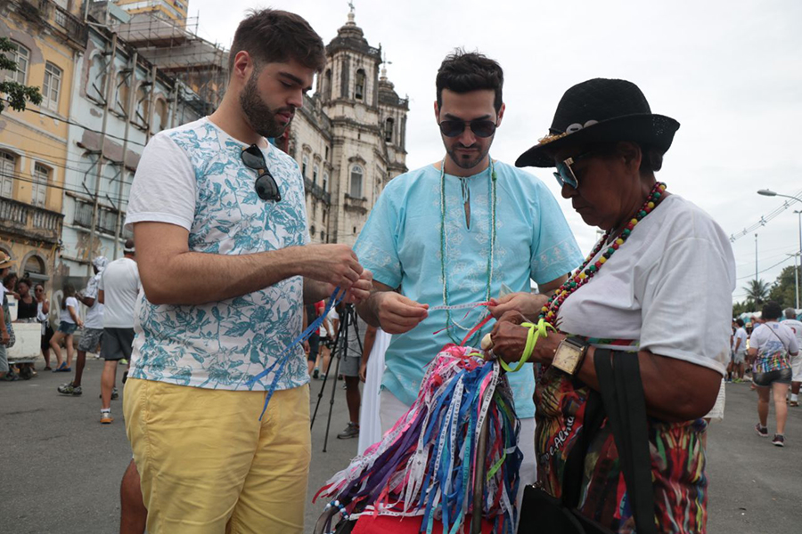 The procession was started at 8 am by Catholics, typically dressed Baianas, politicians, artists, Bahians, tourists and devotees of the saint joined the walk towards the Sacred Hill. Tourists are caught up in the enthusiasm of the crowd.