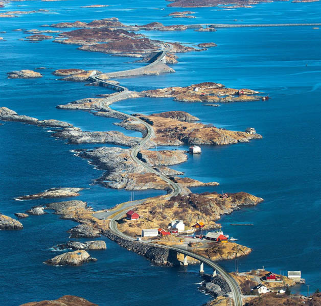 Atlantic Ocean Road é uma estrada que fica na Noruega, tem 8.3 quilomentros de extensão e passa pelas cidades de Molde e Kristiansund é considerada a mais perigosa do mundo.