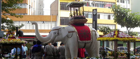 A praça da liberdade é usada como local para as tendas nas quais ficam as oferendas ao Buda. No último dia de festa, haverá uma cerimônia especial para comemorar o aniversário, a partir das 13h30, o cortejo do elefante branco acompanhara a fanfarra da região.