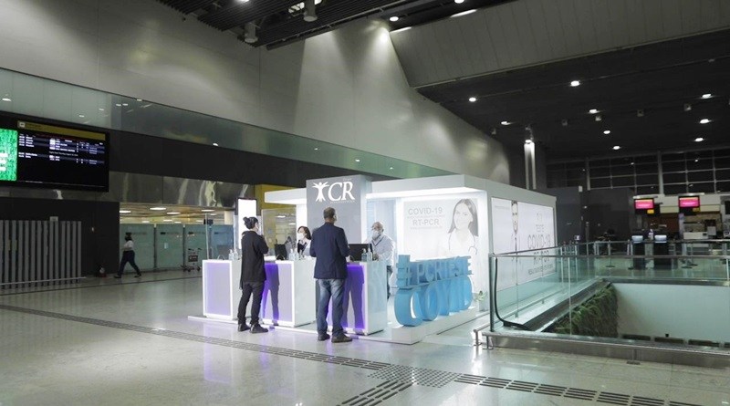 Passageiros, frequentadores e funcionários do Aeroporto Internacional de São Paulo, em Guarulhos, já poderão realizar o exame para COVID-19 no laboratório remoto instalado no saguão de embarque do Terminal 3, onde estão concentradas as operações internacionais. A iniciativa, inédita em aeroportos no país, é fruto da parceria entre a GRU Airport, concessionária do aeroporto, e o Laboratório CR Diagnósticos, rede autorizada pelo Instituto Adolfo Lutz, que será responsável pela infraestrutura e tecnologia para coleta, análise, diagnóstico da doença e emissão de resultado, que será conhecido em até 4 horas.