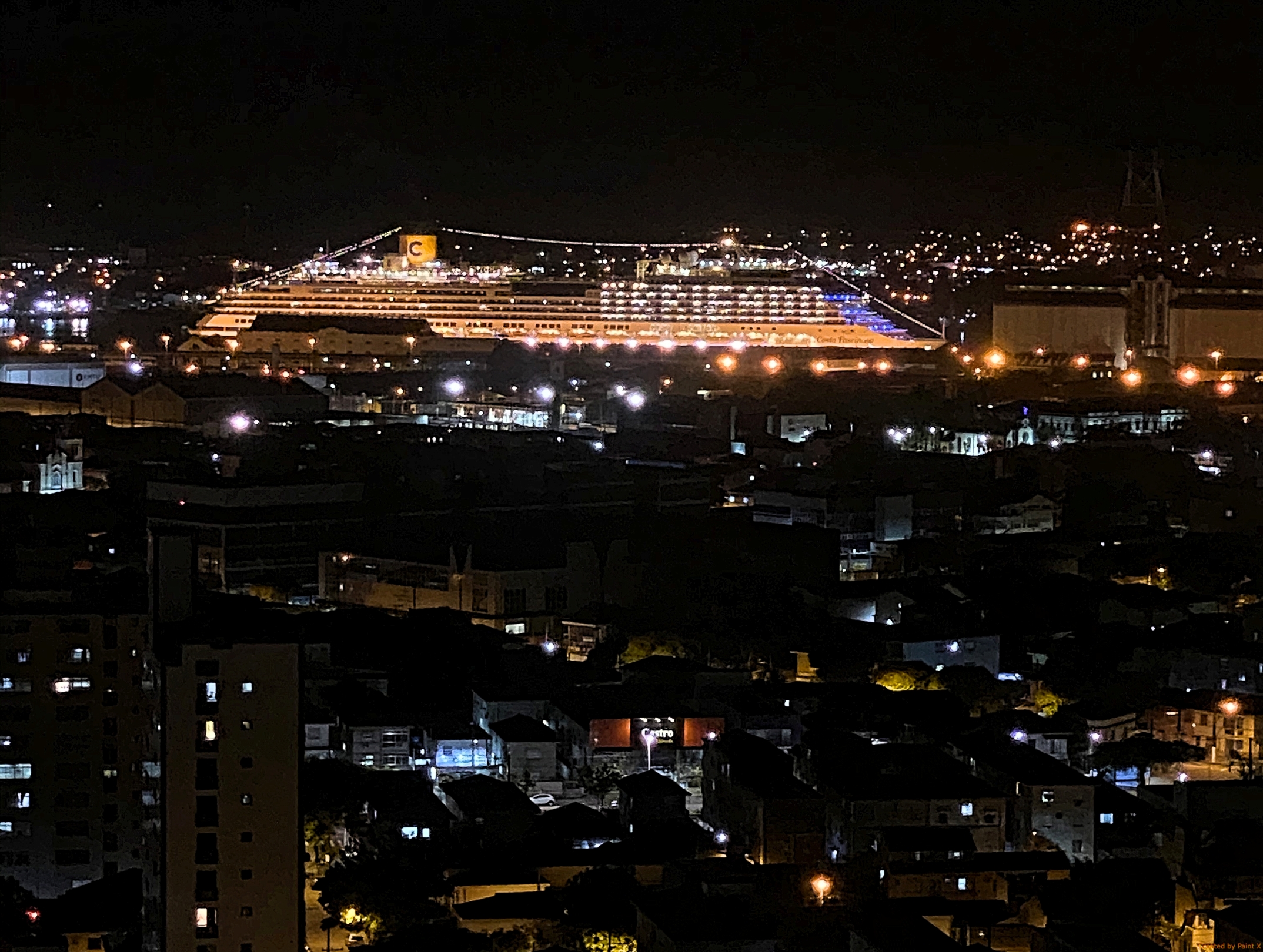 Navio da Costa Cruzeiros ganhou uma iluminação especial com a mensagem “Obrigado”