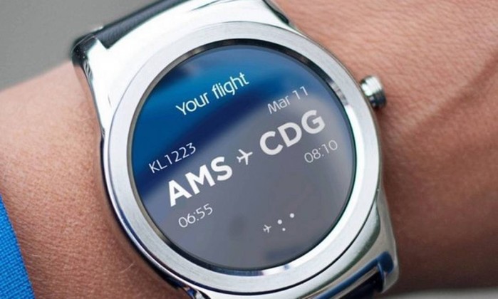 Quem não quiser esperar até lá ou preferir o sistema do Google pode colocar um Android Wear no pulso, que já está no mercado. O smartwatch também tem aplicativos de companhias aéreas, como o da própria American Airlines, Delta e, desde este mês, da KLM. O programa da empresa holandesa tem uma interessante interação com o sistema do aeroporto de Schiphol, em Amsterdã. Ao se aproximar dele, o passageiro receberá o número do portão e horário de embarque atualizado. E quem faz conexão ali poderá checar no aparelho o próximo portão de embarque.
